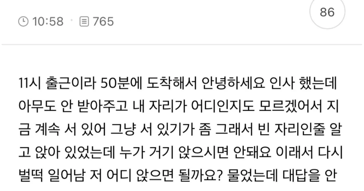 오늘 첫 출근인데 아무도 인사를 안 받아줘